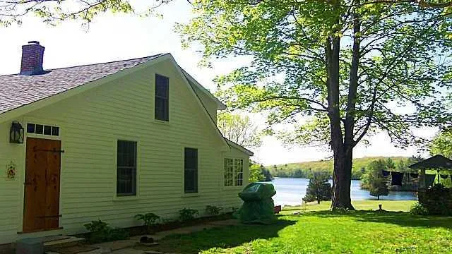 Fabulous water views from this totally renovated 1830's cape; 3.2 acres with 580 feet waterfront on pristine Halls Pond. The home features ash, pine and tile floors, exposed beams with toungue and groove ceilings, cherry panel walls, granite counter tops with stainless steel appliances. This clean State Bass Management Lake has only 5 homes on it; most of the shoreline is undeveloped with much of it being recently acquired by the state for Natchaug State Forest. This offering is a portion of the total property on 5.7 acres minus a second 2.4 acre lot and barn (total of both properties is also listed here for $549,900).