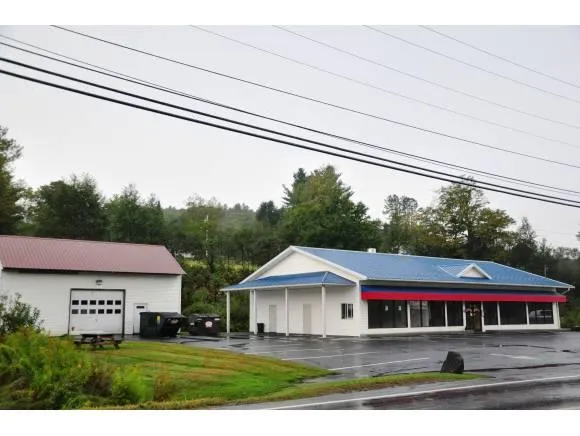 Great location for a commercial property on major east/ west byway from NY thru VT to NH and Maine. Major part of main building is currently operated as a Pizza Restaurant, licensed for 40 seats, with another 400+ sq feet available for expansion or additional business. How about an ice cream shop or coffee /bakery stop? May also serve as rental space along with 1120 sf detached storage garage which was built in 1997. Cooking equipment protected by an Ansul System (Protex II Restaurant Fire Supression System L3000), regularly maintained & inspected.Seller is willing to talk with interested party about sale of business in addition to real estate.