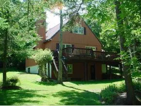 Great Location! 5 minutes to Mt. Snow! 4 Bedrooms,3 1/2 baths. Open concept living on main floor with Master Suite and a full finished basement. Deck overlooks stream and small pond on property. Interior walls are rough-sawn pineboard. Carpeting throughout. 6x8 sun room part of the open living area. Red brick fireplace and surround.
