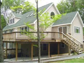 Spacious Cape furnished and equipped to the very highest of standards. Rich decor: Italian leather, ceramic tile, hardwood floors, stone fireplace, fully equipped, top of the line kitchen, stainless steel, granite, serving counter with stools. Lots of windows and skylights. A game room and den with pool table. Huge wrap-around deck with winter views and large spa. A formal dining room with French doors out to deck and cozy second den. 10 minutes to Mount Snow. Excellent rental history.
