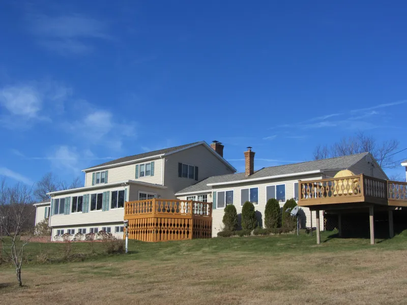 This colonial style home is a custom built addition to a 1964 rustic cabin. Located on a corner lot with 28+ acres of open meadows, woodland, southern views and direct access to snowmobile trails. Extremely bright interior with lots of windows to the view. Kitchen with granite counter tops and stainless appliances, open to dining with pellet stove and lighted hutch. The living and dining open to the sun-filled family room. There are three choice bedrooms with private baths and den with slider to deck. The original cabin provides the ideal guest quarters or in-law apartment with two additional bedrooms, bath, open kitchen, living with stone fireplace and a sun-filled family room. Additional features include private hot tub room, two-car attached heated garage, plus a 40x36 Morton heated garage with a 20x60 addition, garden shed, generator and much more. The property is ideal for horses, g...