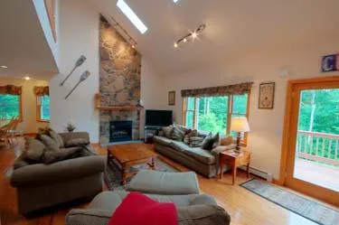 Beautiful home sits atop the town of Dover with winter mountain views, Vermont privacy, and a quiet location for year round enjoyment. This home is built for ease of maintenance. The whole outside is charming but low maintenance, and the inside echoes this. Beautiful expansive open concept living including open kitchen, dining, living spaces. Vaulted ceilings allow for great light. There is a front covered porch and large rear deck for enjoying a BBQ during the warm summer days and cool nights. The home is setup for either one or two groups as it has an additional lower level kitchen, 5 bathrooms, 6 bedrooms, and plenty of space to stretch your legs. A great buy!