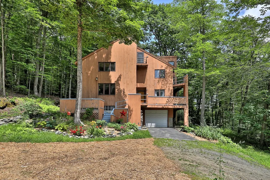 3-level contemporary home with a garage on 10 acres in Grafton. The home features a living room with wood burning fireplace, kitchen/ dining area, half bath & laundry on the first level. A spacious master bedroom suite is located on the second level with two additional generously sized bedrooms & large guest bathroom and a sitting area. Third level loft has four areas that would be perfect for a study, office, reading area or to accommodate extra overnight guests. There are lots of bright windows, a large 1st level deck and other smaller outdoor decks/balconies that are accessible from each level. This property is centrally located to several major ski resorts and towns of Grafton, Chester and Londonderry. Sold partially furnished. Come see for yourself ! All measurements approximate .