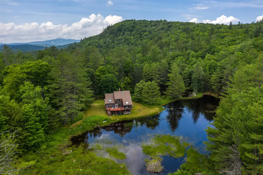 A spacious 3 bedroom, 3 bath contemporary home on 5 acres with a pond is waiting for you ! The main floor is complete with a kitchen/dining area, living room, sunroom and gorgeous views of the pond. From here you have direct access to the waterfront large deck. Convenient first floor master suite with private bath. The second floor offers two additional bedrooms and an office. Utility room, storage room and 1 car attached garage are in the basement level. Close to Stratton and Bromley mountains . All measurements are approximate.