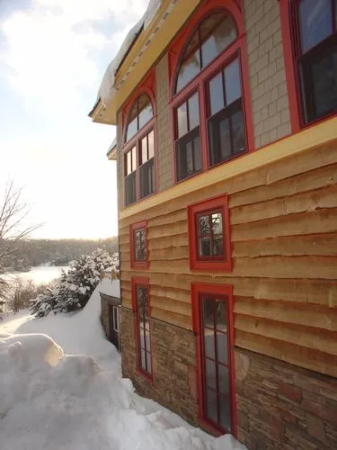 Fantastic waterfront home on Lake Raponda. Completely private drive and setting. This house has the look of a majestic lake bungalow adorned with the finest workmanship. The lake side has expansive glass overlooking the tranquil water view with 241 feet of private waterfront and dock. Custom built in 2007/08, this architectural designed home features an open concept living area with massive fireplace and stone raised hearth. Cathedral ceilings in the great room and dining room, an upscale kitchen with customer cabinetry, a large game room, spacious loft with pool table dressed with custom stripped trees and railings. Large artic entry to stash the gear, attached garage and covered wood storage & boat docking system included in the purchase. Mature plantings and evergreens provide complete privacy of the yard and large flagstone patio. A very unique property and a perfect vacation home with lake, ski mountain, and golf just minutes away.