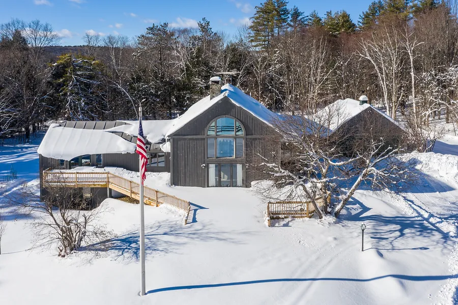 This light-filled Yankee Barn is sited on 31.4 acres with a pond and direct trail access. There are fabulous views of Mt. Ascutney from most of the rooms in the front of the house. The well-thought-out floor plan has plenty of space for entertaining. The cathedral ceiling great room has a wall of windows and a wood burning fireplace. The primary en suite bedroom is on the main level with a loft and three additional bedrooms upstairs. The lower level has some finished space and ample storage.