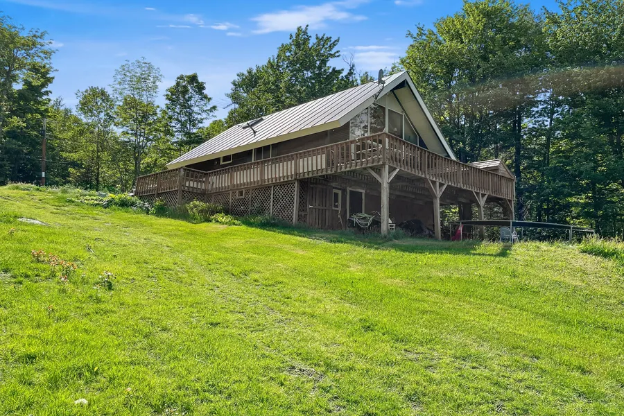 Perched atop five acres of open land and woodland, this charming chalet is the ideal Vermont retreat. Just ten minutes from Silver Lake and a short drive to the amenities of Woodstock, this home enjoys the perks of privacy with benefits of convenience. The open concept lower level comprises a comfortable bedroom and a newly renovated bathroom; the main bedroom opens onto an airy loft - perfect for working from home with lightening-fast EC Fiber. The newer barn/garage is insulated and partially finished, with a wood stove and plenty of storage. At the end of a town-maintained road, this is a terrific opportunity for a full-time residence or vacation home.