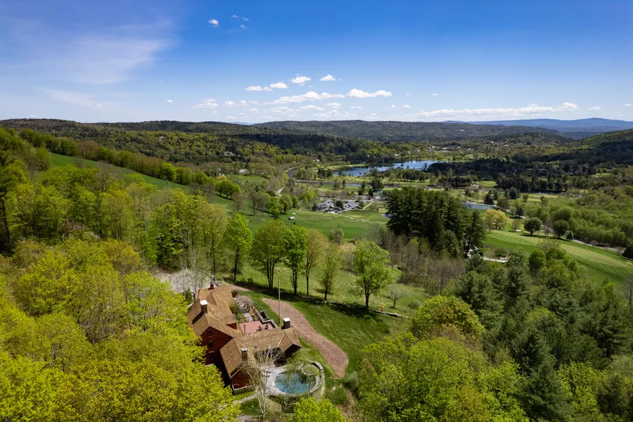 Superb 1800s replica center hall chimney Saltbox on 2.24 acres. Hand planed paneling in the parlor and antique paneling in the dining room sourced from Connecticut by Armand Zildjian. Wide pine floors throughout. Gorgeous brick and stone work including 7 fireplaces, extensive brick patio, stone walkway and terracing, and stone wall. Beautiful built-in corner cupboards in the parlor and dining room. An elaborate recently renovated kitchen with a farmer's sink, large island, La Cornue gas range and wood paneled Sub-Zero refrigerator. Numerous period details including metal and wood latching, split wood staircase, and lighting fixtures. Parcel abuts Quechee ski hill and is protected by greenbelt. Outdoor kitchen, fireplace, pool, and hot tub take great advantage of the prominent location overlooking the Quechee valley. Looking southeast with incredible views of Lake Pinneo, Mount Ascutney and mountain ranges. Lovely landscaping and flowers enhance the picturesque setting. A private first floor master suite, renovated bath, walk-in closet, gorgeous fireplace and private access to pool and hot tub. Everything you can imagine including a secret passageway and a loft accessed by ladder. A fine property with character, charm, and personality!