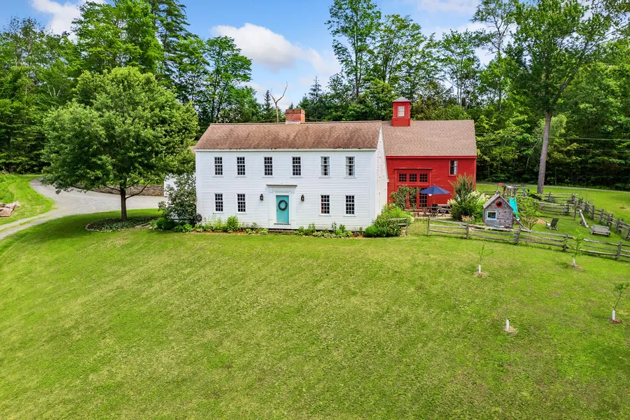 Minutes from Quechee, Woodstock and the Upper Valley, this 2006 reproduction salt box and attached 1830’s post and beam barn are set high on the hill on 2.38 open and landscaped acres. Built with vision and creativity by a folk artist and master craftsman and expanded and improved by the current owners, the interior totals 4,600+ sq ft, and offers stunning spaces in the Great Room with soaring 25-foot ceilings. 4 Bedrooms and 3.5 baths, all in the charming style of the early American second period, a primary bedroom suite with a fireplace on the main level, and a gracious dining room and country kitchen with an oversized fireplace and hearth complete the first floor of the main house. A second primary suite on the second floor of the barn offers the 4th bedroom and another full bath, both recently completed. A finished basement provides a comfortable space for a TV/game room and storage....