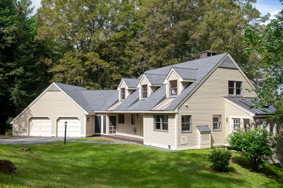 Five bedroom, four and one-half bath Quechee Lakes home located on a tree lined private road. Spectacular evening light washes over the front of the home with golden light that filters into the loft, great room, sunroom, and bedrooms! Easy access from two car garage attached via a large screened porch with entry to kitchen and onto wraparound deck. Open concept cathedral ceiling main living space perfect for entertaining lots of friends and family or getting cozy by the fire. Hardwood flooring through the main level and loft. Basement consists of a family room with direct access to the back yard, two bedrooms, laundry and full bath. So many possibilities to enjoy Quechee and the Upper Valley.