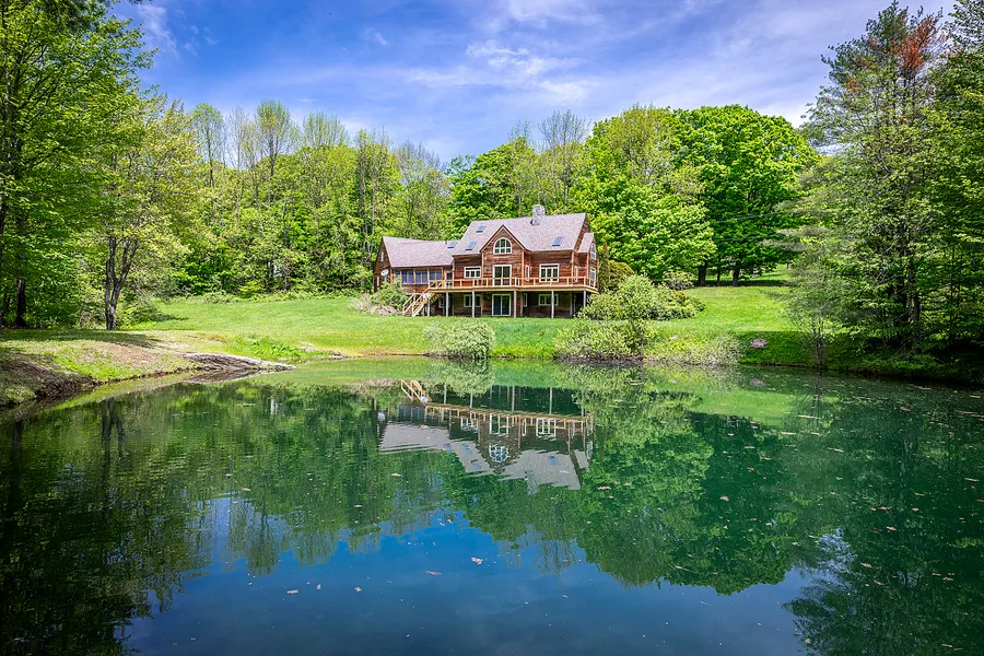 Beautifully constructed Davis Timber frame home in the desirable Silver Hill region of West Windsor. Spacious, bright rooms connect beautifully to a private outdoor deck and screened porch overlooking a large swimming pond. The generous living room runs front to back anchored by a beautiful stone fireplace with warm golden hardwood floors, and exposed beam structure. The open concept kitchen offers plenty of workspace, and benefits from a closet pantry, and there are several options for dining space. There's a main level office/study which would easily accommodate a primary bedroom option. On the second level, there is a spacious primary bedroom suite, and two additional bedrooms sharing a bathroom. Loft space above for additional accommodation. The lower level is walkout finished space with a huge family room featuring a brick cove with potential to accommodate a woodstove. The oversized two-car garage has a drop staircase (with plenty of storage above) and steps directly into the mudroom. Located on a quiet dirt road, with nearby recreational trails in every direction. Close proximity to Mt Ascutney, Okemo Mountain, and Woodstock, Vermont.