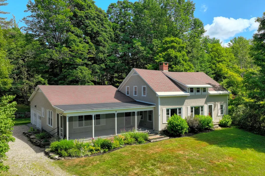 This classic Vermont farmhouse, lovingly maintained by three generations of one family, is now ready for its next lucky owners. Set on 7.5 acres on a quiet mountain road outside the village of Weston, this gracious home has been expanded and updated to blend country charm with modern living. Imagine family gatherings in the open, light filled living/dining room with cozy wood burning fireplace and pellet stove, or on the expansive screen porch, all overlooking the gently sloping front lawn and gardens. The country kitchen is a chef's dream with a farmers sink, gas range, granite countertops, and abundant cabinetry. The first floor primary suite, located in its own wing, includes a large bedroom/sitting room, walk-in closet, and ensuite bath. Your family and guests will retreat to four bedrooms and two baths over two floors with a bonus room for use as a home office, den, or craft room. E...
