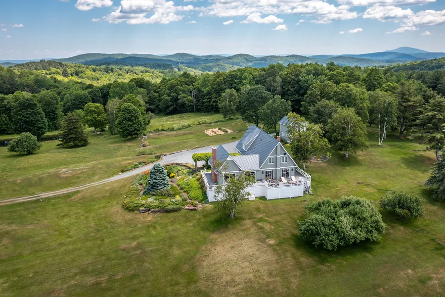 Windy Lane is nestled on 68 very private acres- with stunning mountains views overlooking a large pond stocked with trout for those fishing enthusiasts. Expansive stone waterfall accents the swimming pond with a unique stone diving board and sandy beach for easy access to swim. Approx. 30 acres of open land, rolling meadows, antique stonewalls and exceptional perennial gardens. The main house features 4 bedrooms and 3 baths -- a handsome master suite, vaulted ceiling accented with old antique hand-hewn barn beams with adjacent private office, spacious private bathroom with soaking tub. The first floor consists of hardwood floors, an open floor plan, sunny kitchen/family room with large island -ample room for entertaining friends and family. Living room features a wood burning fireplace to cozy up with a book on a snowy day. Enjoy the stunning views and rolling meadows from the wrap aroun...