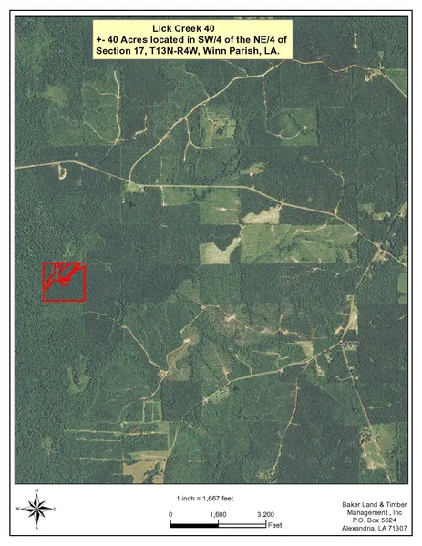 +/- 40 acre timberland tract located approximately 18 miles northwest of Winnfield, LA. The tract is predominatley comprised of a pine plantation in need of a first thinning. There also is a small amount of pine sawtimber and hardwood pulpwood. Nice timber investment tract with recreation potential.