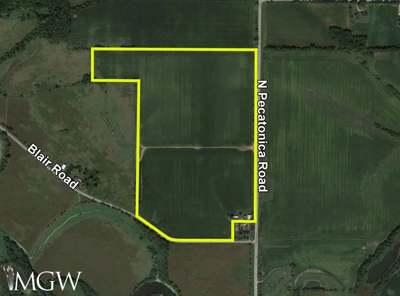 Frontage: There is approximately 15/16 mile of road frontage on N Pecatonica Road and 1/4 mile on Blair Road.