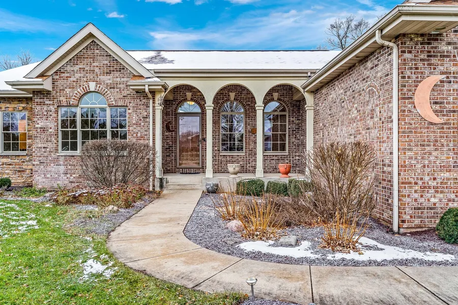 SHARP Custom built ranch style home situated on 1.18 Acre in the Hononegah School District! The graceful sidewalk to the front door showcases the lovely landscaping. This huge ranch features 2507 sq.' of living space with a split bedroom layout. Great room has a volume, cathedral ceiling and a beautiful fireplace with brick surround that is the heart of this home. Spacious kitchen and dining area are open to the formal dining room & great room providing the open flow that fits today's lifestyle perfectly! The kitchen features Cambria quartz countertops, warm wood cabinetry, stainless steel appliances, double wall oven, pantry, island, and a bar counter. The dining area overlooks the eye popping backyard. The formal dining room is centrally located and is the perfect spot to host friends! Awesome home office has a built-in desk, cabinetry and french doors for privacy. The primary suite has a wall of windows and a walk in closet. Freshly remodeled primary bathroom has gorgeous floors, a huge shower with glass doors, jetted tub, and double sink vanity! The additional 2 bedrooms have a Jack & Jill bathroom set up. Main floor laundry center has a sink and cabinets to make laundry day a breeze. The 3.5 car garage is insulated & drywalled. Basement has an egress window and rough in for a bathroom. Outside is a nice two level deck, 24 x 12 Outbuilding and yard irrigation. UHP Home Warranty included.