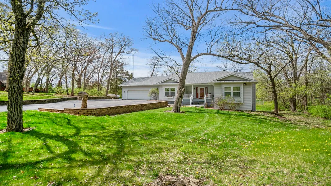 Country living awaits! Shirland/Hononegah school district! This split bedroom ranch offers 4,000 sq. ft. of living space. Fully paved driveway leads to the house and covered front porch. On the main floor you will find a living room with three sided gas fireplace, built-ins with lighting, double patio sliders with an excellent view of your property. Eat-in kitchen with granite countertops, stainless steel appliances, under cabinet lighting and breakfast bar. You will also find a dining room, three bedrooms, the primary bedroom offers a walk-in closet, ensuite bath with double vanity, soaking tub, and tiled shower. The other two generously sized bedrooms and an additional full bathroom with tiled surround. Main floor laundry with adjoining half bath. Hardwood floors throughout the entryway, dining room, kitchen, and laundry room. The lower level offers a full exposure with a separate entrance. Large family room with a pool table, kitchenette with sink, eating area, rec room, fourth bedroom (no closed in closet), third bathroom with a jetted tub, and an abundance of storage space. Deck and patio over look your oasis. 30x40 and adjoining 22x70 Cleary outbuildings with electric and concrete floors. The 30x40 is heated with a separate propane tank. 11'10"x9' over head doors. Front and back decks painted in 2022. New well pump in 2019. New HVAC in 2016.