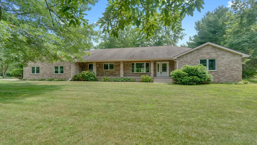 This stunning ranch home offers over 2,400 square feet of finished living space with a full brick front, set on 7.47 acres of beautiful open space and woods. Located in the Rockton/Hononegah School District. The main floor features an open floor plan with a great room that boasts a half-vaulted cedar plank ceiling, a freestanding wood burner, and a stone accent wall with built-in wood storage. The kitchen includes an island, pantry, and appliances, and adjoins a dining room. There are two bedrooms and two and a half bathrooms on the main floor; the primary suite includes a walk-in closet, en-suite bathroom, linen closet, and a cedar closet, while the second bedroom is conveniently located next to a full bathroom. Additional main floor conveniences include a laundry room and a half bath, as well as a four-season cedar porch off the garage. The basement provides ample storage, a freestandi...