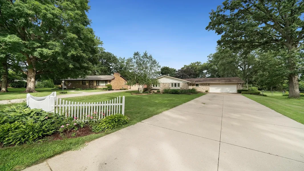 All-brick ranch featuring 3 bedrooms and 3 full bathrooms. The main level offers an open layout with a spacious living room, dining area, and kitchen equipped with stainless steel appliances. Enjoy a cozy family room with a fireplace and a stunning sunroom with vaulted ceilings and a wall of windows and doors overlooking the backyard. Three bedrooms and two full bathrooms are on the main level. The finished lower level includes a second kitchen and another full bathroom—perfect for extended living. Step outside to a beautifully landscaped yard with a deck and inground pool. Attached two-car garage completes the home.