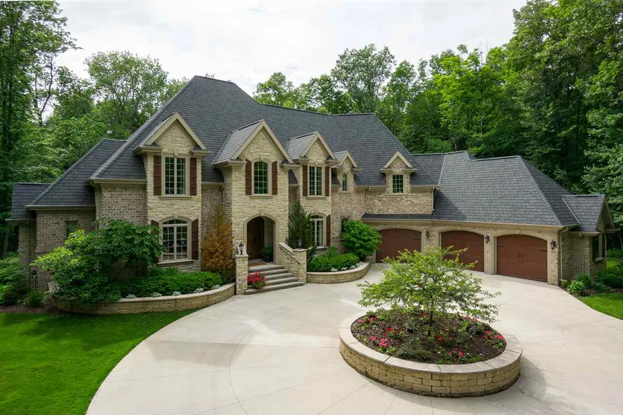 This home is a traditionally elegant one-owner home on a secluded, fully wooded cul-de-sac lot!! This architecturally designed French chateau home is a true castle in the woods. The back porch leads to a beautiful stone-walled concrete patio with wood burning fireplace. Inside find a curved open staircase in the foyer with second level overlook. The first floor has 9'4+" ceilings. The formal dining room has build-in glass cabinets. The vaulted living room ceiling is capped with timber beams. Exquisite kitchen with center island; master suite with tile shower and soaking tub.