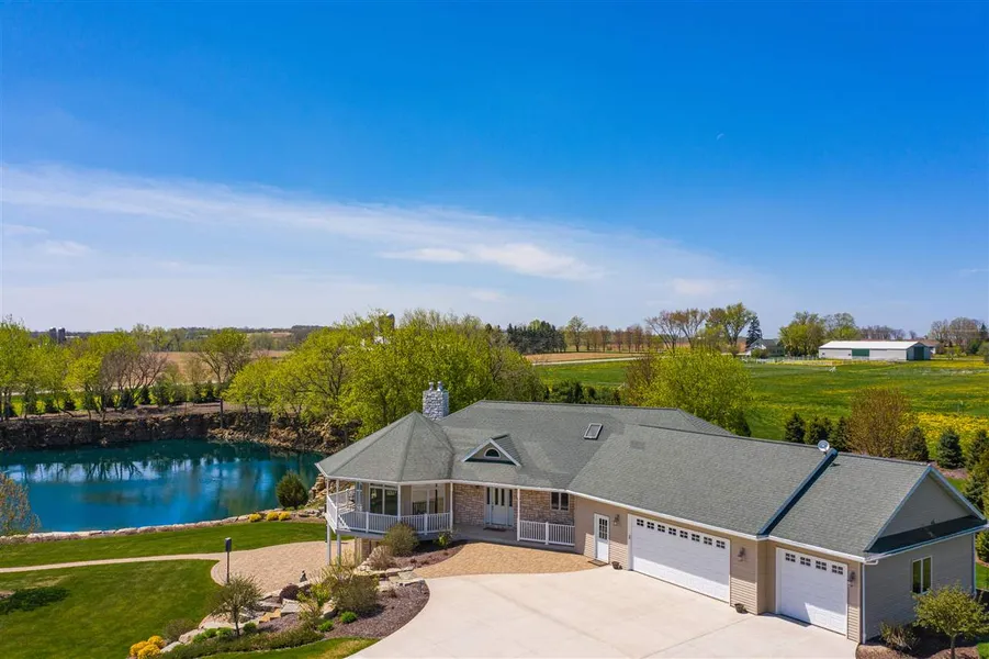The views are breathtaking! Attention to detail is evident in this unique custom built country sanctuary. You will feel just how spectacular this property is as you drive in the tree-lined driveway. Enjoy a cup of coffee and sunrise on the wrap-around Trex veranda. Built in 2005 this like new 3356 sq ft home is a 4 BR, 3 BA ranch w/high ceilings, two fireplaces, a sun-room or office on the main level, LL walkout familyroom, maple flrs, Swim, fish in Stone-framed pond . Overlook your 16+ acre estate from windows all around. 72x36 part heated/pole building. $10,000.00 update credit at closing