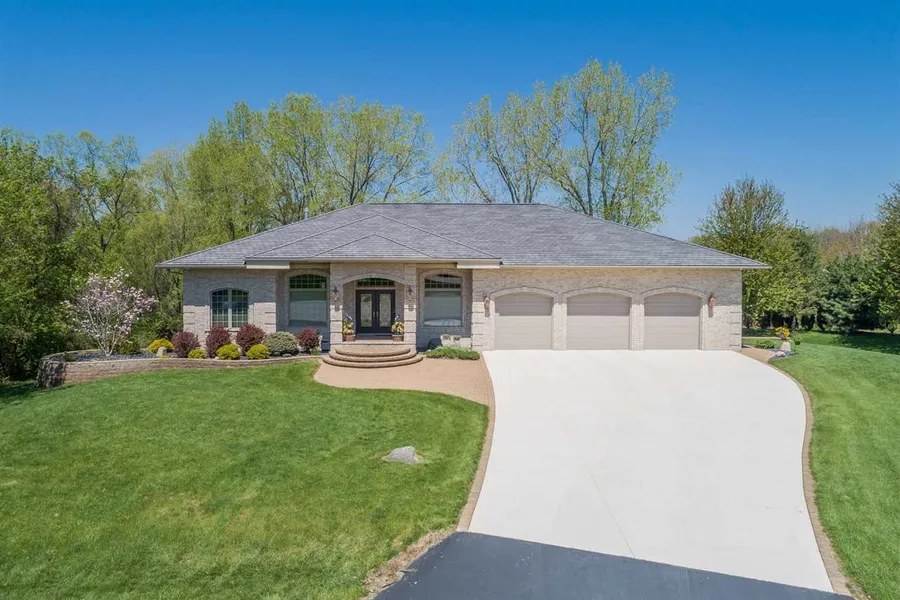 Custom Built brick ranch style home on 1.21 +/- cul de sac lot. Just minutes from the water, shopping & highway. Open concept layout w/split bedroom design. Kitchen w/Amish built Hickory Cabinets, LG center island w/granite counters, Great Rm w/gas FP & custom built ins. Formal Dining w/tray ceiling. Master Brs w/dual closet & Bath w/tiled shower, tub & private deck overlooking well landscaped yard. Finished walk out LL w/kitchenette, 2nd Laundry space and more. Oversized 42x25 heated garage w/tons of storage. This is not a drive by!