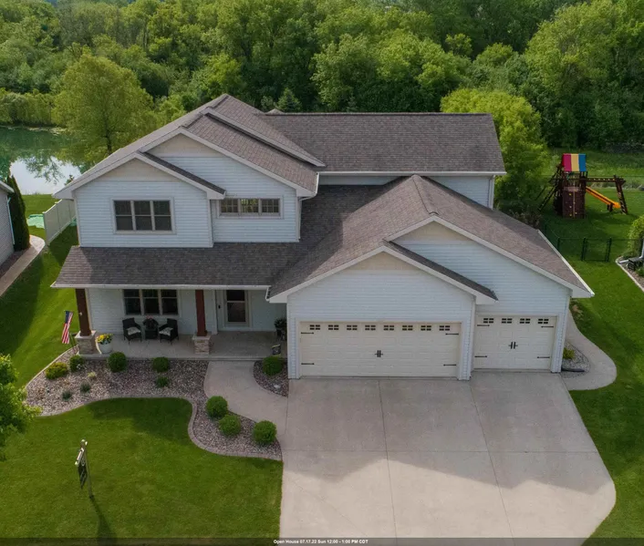 Immaculate Southwest Oshkosh Two-Story with Two En-Suites! Enjoy shared pond, walking trail, fire pit, first floor primary suite with walk in closet, tile shower with dual shower heads; jetted tub. There is a second suite on the second floor. Partially finished basement with wet bar. Surround sound on main floor, dining room with built-ins, mudroom. Updates include: backsplash in kitchen, center island, granite in 2 bathrooms, bridge, curb appeal, concrete slab added to patio.