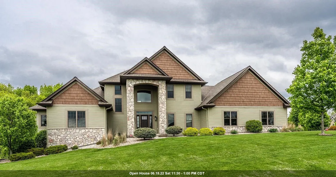 Rare find! 6 bedroom, 3.5 bath on 1.24 acres, custom home built by Signature Homes. FP with floor to ceiling stone tile is the focal point of this beautiful two story living room with XLg windows, open concept living with kitchen island, SS appliances, quartz countertops, kitchen hearth room for dinning or to relax and enjoy the second fireplace. New light fixtures throughout. 1st floor master suite with heated floors and lg tiled shower, jetted tub. Walk out LL has 10' ceilings with large windows, radiant floor heating, a wet bar, full bath and two bedrooms. Perfect for entertaining or guests. Other features include composite deck, brick patio, heated garage with LL access, in ground sprinkler system, in ground dog fence, raised garden and fully landscaped. Showings start 6/2/22