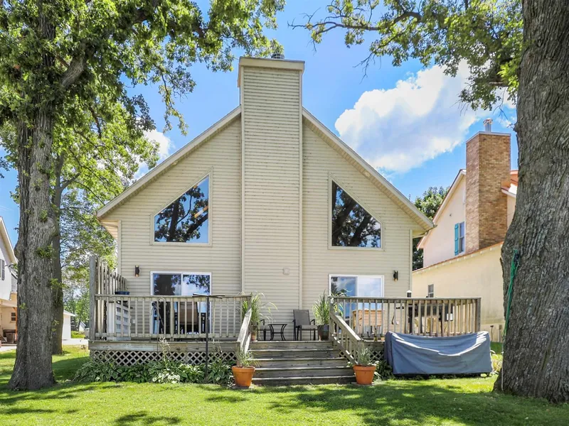 Magnificent sunsets and spectacular lake views are yours to enjoy from the east shoreline of Lake Winneconne! This prime location provides a year round retreat of recreational activities for all seasons. This expansive main level features refreshed kitchen with center-island, tile backsplash, and pantry, GR boasts soaring ceilings, floor to ceiling wood burning FP, bar area for entertaining, and patio doors to deck overlooking the lake, 2 main floor bedrooms with remodeled full bath, laundry, and direct access to attached garage. The upper level consists of a master suite with jetted tub, and two additional bedrooms with 3rd full bath. Additional inclusions: dock with lift, additional 50x130 +/- out-lot across street! Showings start 8/12/2022.