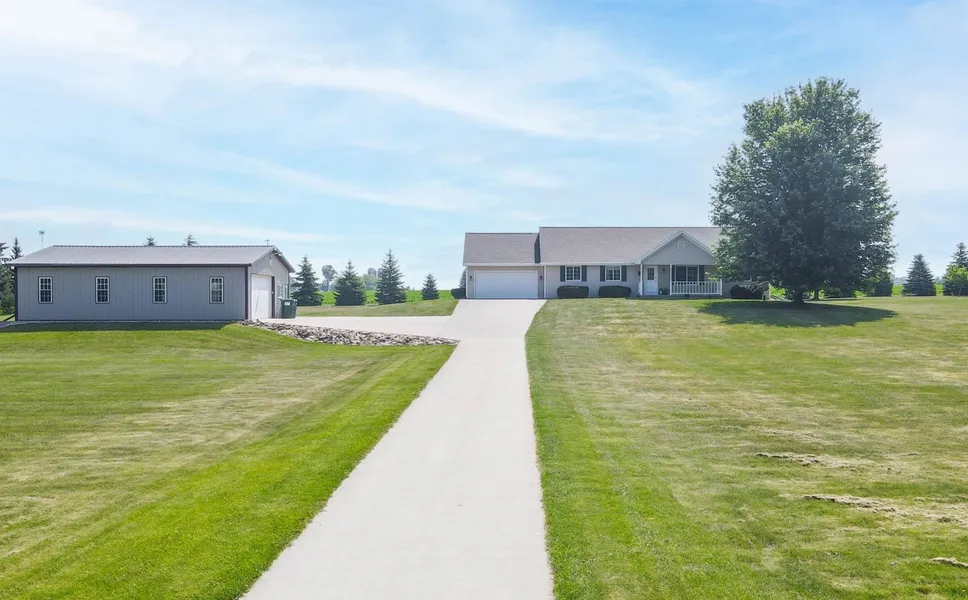 Nestled on 2.79+/- acres sits this picture perfect home that provides the ultimate retreat that’s only 20 minutes from the Fox Cities. Meticulously maintained split bedroom ranch w/ so much to offer. Open concept main floor w/ LVP flooring thru the living room, dining area & kitchen. Kitchen offers tons of cabinetry w/ breakfast bar area & full appliance package. Dining area offers patio doors out to the tree lined backyard. Primary suite w/ walk in closet and private bath. 2 additional bedrooms and a full bath along with first floor laundry completes this home. Lower level is ready to finish with an egress window and stubbed for a full bath. Luxurious landscaping, maintenance free deck overlooking tree-lined lot & more. Bonus 30x40 heated & insulated detached shop with 16’ overhead door.
