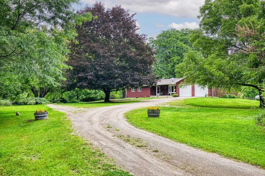 Looking for a little space just outside Neenah? Let us present this one owner ranch with a 5.1 acre lot boasting serene and well maintained surroundings seven miles west of Neenah. Property starts with a creek running through the front. Private from the road; level backyard; extra 13 x 31 outbuilding. Mature trees and nicely landscaped. Wild life comes to visit regularly. Come inside for a well built home with vaulted ceilings in living room and wood burning fireplace. Long list of updates: Newer garage and home roof (2021); Wasco windows whole home w/transferable warranty (2003); Furnace 2013, A/C 2021; chimney 2021; Gutters and downspouts 2021; Hard to find a better spot to rest, relax and enoy life! Open house Sunday July 28th 10:30-12pm.**ALL OFFERS to be reviewed Monday 7/29 4pm