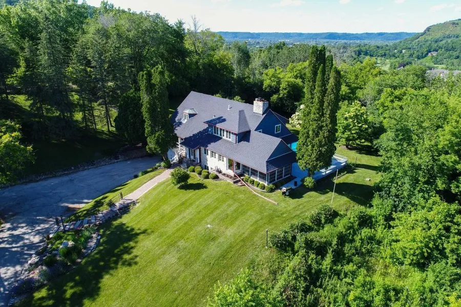 Stunning 5br, 4.5ba mid-century estate in a fantastic private setting. This property has the feel of a private country location but sits across from a golf course with fine-dining and casual restaurants and is just minutes from downtown. Complete with kidney-shaped pool and tennis courts, this beautiful home is situated on 7 acres with manicured lawn, stone detailed gardens, and beautiful flowering trees. The inside of the home boast 3 levels of generous living space with its mid-century details still intact and fun modern touches. Each spacious bedroom has ample closet space and there are built-ins galore. Four have an en suite bathroom and the fifth has an adjacent powder room. Agent is relative. Please see supplement for additional description.