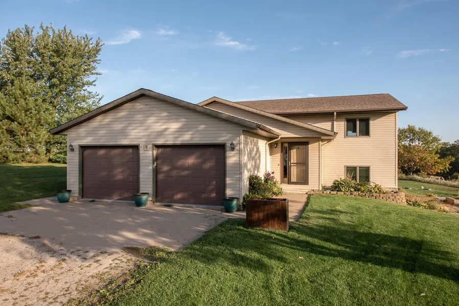 Beautiful house in the country with gorgeous views from the deck and plenty of room to play outside. This spacious open concept home sits on a double lot. Large open kitchen, dining and family room have access to backyard and deck. Master bed/bath on main floor with slider to deck/backyard. Lower level has additional 2 bedrooms and full bath. Living area with fireplace, efficiency kitchen and walk out access to patio, bonfire pit and yard. Just minutes off I-90 with easy access to La Crescent or Winona.