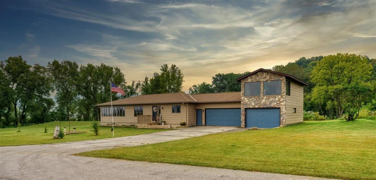 A home you won't want to miss! This large rambler sits on three acres of privacy overlooking the river with plenty of room to grow! Offering three bedrooms on the main level with a fourth non-conforming downstairs (needs egress). The lower level has an outstanding workshop and plenty of storage space. With new carpet installed in the lower level this is truly move-in ready! Finally, you're going to love the three car garage. You'll have plenty of room for your toys along with a heated office or man cave above the third stall. Affectionately named "The Crows Nest," the beautiful space above the third stall is ideal for an office or getaway with a beautiful view of the Mississippi river. Quick closing possible! Newer septic and mechanicals and brand new roof 2022. Home is an estate and being sold As-is.