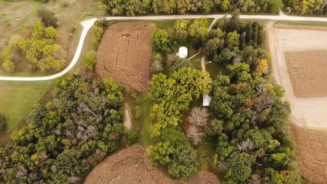 Mature walnut, red oak, white oak, and towering pine trees surround the property. The 4 acres of tillable is currently rotated between corn, bean, and alfalfa. There is a small pond and numerous apple trees.