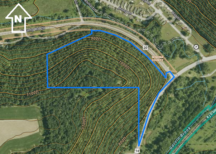 Located in the heart of Winona Countys bluff country this property offers incredible views of the surrounding valleys. The hillsides and ridge top are covered with majestic red oak trees. This property is situated at a point where two ridges that are several miles long converge. It is interconnected with thousands of acres of hardwood ridges & valleys. The bluff is easily traversed by a hill road that allows for vehicular access to the top where you can see for miles over Garvin Brook Valley and the village of Stockton. There are several other older roads that provide access to various parts of the property. Atop the hill there is a pond for attracting wildlife which is trampled with deer tracks. Heavy deer trails crisscross the hillsides and ridge. A couple small clearings provide ample room for food plots on top the ridge. There is also an established campsite and a permitted 30x30 ICF building foundation ready for an off grid cabin to be built upon. A chalet built in this spot would offer views like none other. Garvin Brook, a beautiful little spring fed trout stream lies just across the road. This creek has had significant stream habitat improvement and restoration work done in recent years and the population of brown & brook trout have responded well. Whitewater State Park & Management area is just 15 minutes away with public access to unlimited fishing, hunting and hiking. Ultra-convenient location being only 5 miles to Winona, 30 miles to La Crosse and 35 miles to Rochester.