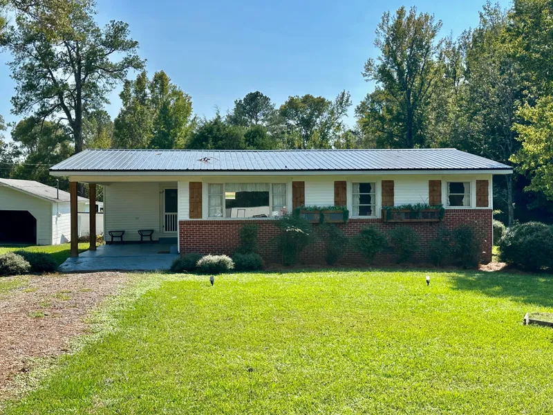 The focal point of the property is a 1,380 square foot farmhouse, full of character and charm. With two bedrooms and one bathroom, this home has been meticulously cared for, featuring original hardwood floors throughout, stunning antique windows, and a new roof installed in 2022. The exterior is equally inviting with custom-wrapped poles on the 12 x 22 carport and custom shutters, giving the home a welcoming country feel. Need extra storage? This property has you covered with two detached buildings: one 21 x 28 and the other 16 x 21 perfect for keeping your ATV, boat, or lawn equipment out of the elements, or for use as a workshop or additional storage.