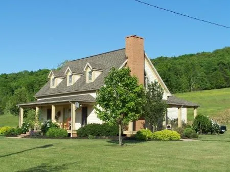#00107 This elegant 3,000 square foot, two story country home nestled near the center of 262 acres of some of the most desirable land West Virginia has to offer. The custom built ten year old home has 2 x 6 wall construction, select clear cedar siding, solid colored stained, architectural shingle roof, Anderson windows and forced air gas heat and central air conditioning. The kitchen has custom built cherry cabinets, solid surface countertops, Viking appliances, imported floor tile and an island bar. Dining room has matching tile and both kitchen and dining have skylights and cathedral ceilings. The spacious living room has hickory hardwood flooring and a brick fireplace. Large Master Bedroom has hickory hardwood flooring and a connecting master bathroom that has tile floor, Jacuzzi tub, enclosed shower unit and solid maple cabinetry. There are two sizeable upstairs bedrooms with ...