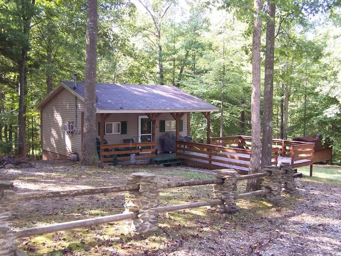 #00299 Enjoy cozy camping and your own hunting retreat in the woods of Wirt County with this 430 sq. ft. cabin sitting on .52 acre of land. The cabin sits in a pristine park like setting with the neighboring camps also being very well maintained. The interior of the cabin has an eat in kitchen, living room, one bedroom and a bath. The cabin is heated with baseboard electric heat and there is a room air conditioner in the bedroom.. The property has well water and septic system. All inside furnishings stay. Outside you can enjoy the peaceful quiet country setting on your front covered porch and an open deck and you will have extra storage space with an 8 x 12 outbuilding. This property is only 5 minutes to good fishing in the Little Kanawha River. With the purchase of this cabin you also get 1/9 undivided interest of 39 acres and also available is a membership to 651 acres of lease...