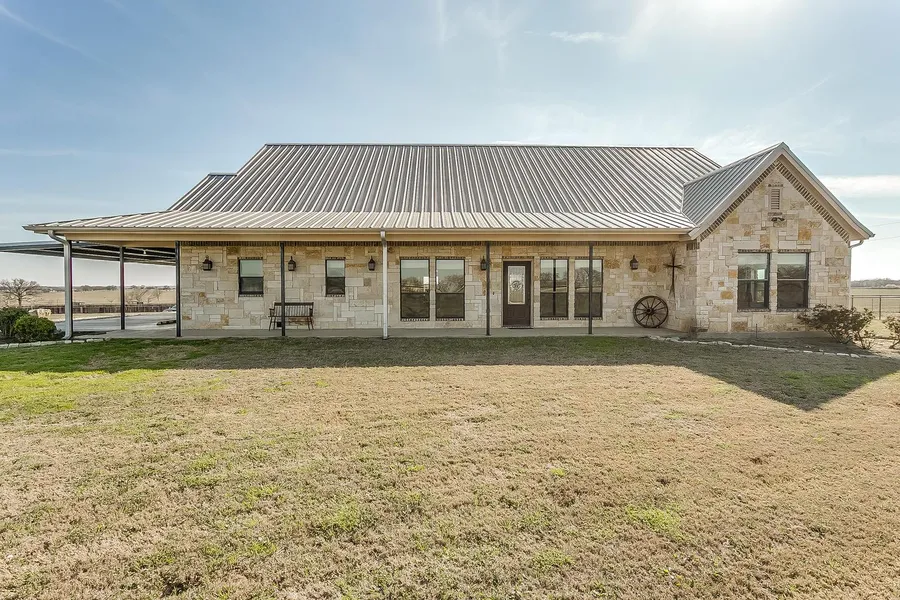 Horse lover's dream. Custom built Austin stone ranch style home w thoughtful upgrades and rustic touch. Stained concrete floors, open concept split floor plan with a huge living area, fireplace w custom wood slab mantle, poured concrete kitchen counters w Granite and tumbled marble. Gas stainless appliances, lg island w eat in kitchen. Small shower or dog wash in laundry room w extra space for freezer. Master suite w soaking tub w extra heater, separate shower, roomy closet and lg windows. Pool w waterfall. 5 stall horse barn, tack room w roll up doors, shop or hay storage, 150x280 arena w electric chute, concrete cattle lane and stripping chute. Also 50x190 calf roping lane. Turn out traps with loafing sheds.