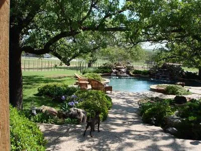 NEW REDUCED PRICE..BRING ALL OFFERS!! This rolling 94 acres is located only 37 miles to downtown Ft. Worth! The magnificent custom rock home boasts granite countertops, gourmet kitchen, hardwood floors, designer carpet, pecan doors and Frank Lloyd Wright style windows and french doors. The great room is grounded with a floor to celing stone fireplace and accented by a vaulted beamed ceiling. The kitchen is open to a quaint living area that contains a rock fireplace and hidden built-ins for your stereo and television. The formal dining area opens to the covered veranda outside. The Master Suite has vaulted beamed ceilings and the bath gives the feeling of a private spa. The lush landscaping and tiered steps just out back lead to the gorgeous pool that is highlighted by two waterfalls. Just down the hill sits the 8 stall tilt-wall barn which is completely insulated and contains an office, tack, feed, washrack, EZ cool fans, fly system, roll up doors and extremely high pitched roofing allows for proper ventilation. Other amenities include a comletely remodeled guest/manager's house, round pen, hay barn and two water wells. The Ranch is fenced and cross-fenced is 5 strand smooth wire and cedar staves. There are 7 pastures and 3 tanks on the property and a seasonal creek. Coastal bermuda is harvested and grazed. The house is approx. 3900 sq. ft. and has 3 bedrooms and 4 bathrooms. Please click on the virtual tour link above to enjoy many additional photos of the property.