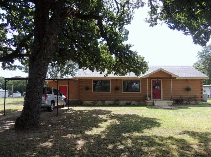 Beautiful huge oak trees in the front yard of this log home. Home has two bedrooms and one bath with large open kitchen and den new flooring and paint. Addition has washer and dryer hook ups and could be converted to addl living space. 8.96 acres with water well and 20x12 carport. Paradise ISD with a convenient location to the metroplex or Decatur. Call to see today!