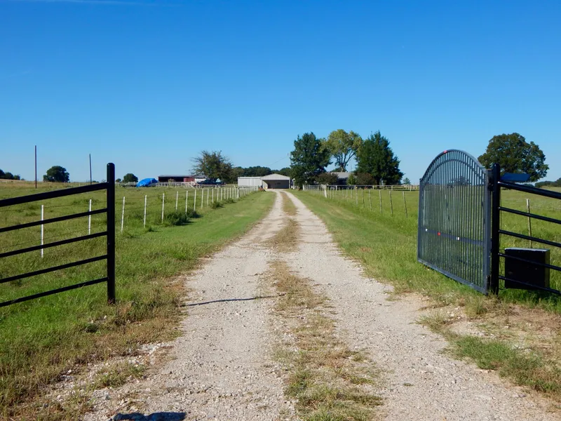 This 13 acre farm is a great place to start a small farm or ranch. Fully fenced property will keep your animals safe. Good grasses that is bailed regularly. 1838 sq ft 3b/2bath home offers plenty of room to spread out with 2 separate living rooms. Great covered metal car porch and shop with roll up doors. Nice barn and storage barn. Electric gate for security and a new storm shelter. Very well kept property wont last long.