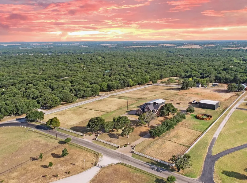 Welcome to this divine 7-acre estate where luxury and tranquility blend seamlessly. A stunning 5-bed, 5-bath residence awaits, exuding elegance and comfort. Step outside to for your own private oasis, complete with a swimming pool to cool off in during summer days, along with outdoor entertainment space including a fireplace, patio and more. The secluded MIL suite, provides the perfect haven for guests or family. Additionally, this property offers ample room for your horses, giving you the opportunity to be as competitive as you and your horses want to be in North TX! Several pastures fenced for horses, just waiting for sheds to be added. Free-flow-style walker has also been added, and needs completion. Arena pad has been started as well. 30x50 shop with lean to and 2- 14 ft roll up doors. Seperate entrance for trailers to easily access the property. NRS5 mins. Will Rogers or Cowtown Coliseum30 mins. Easy access to Hwy 287 for whatever direction you and your horses need to go!