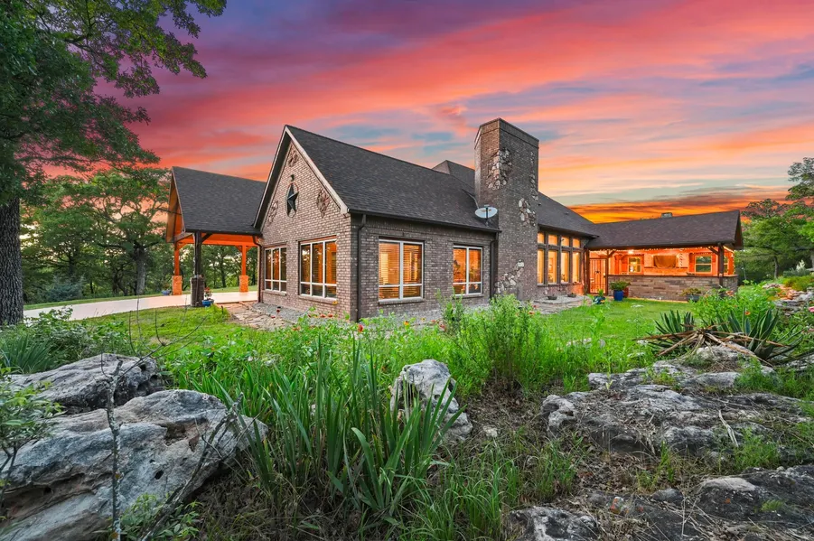 Secluded on a sprawling 33-acre lot, boasting panoramic vistas of seasonal wildflowers & vibrant wildlife. Immerse yourself in the embrace of nature while enjoying the modern comforts of energy recovery ventilation & fresh air circulation. Bask in the year-round comfort provided by the new Daikin 5-ton AC & 2-ton Lenox heat pump, ensuring a perfect climate. Solid 8 ft core doors, utility w-island + crown molding! 3 living areas, including an outdoor oasis + a large rock cropping! Entertain effortlessly w-a propane grill, FP + 72-inch fans. Chef's Kit w-dual islands! Indulge in the convenience of wall-mounted TVs in every room, while energy-efficient windows invite natural light to dance across the exquisite finishes. Outside, a 20x60 storage building awaits complete w-water & electricity, perfect for housing your boat or workshop. Explore miles of walking trails, ATV paths + horse trails...