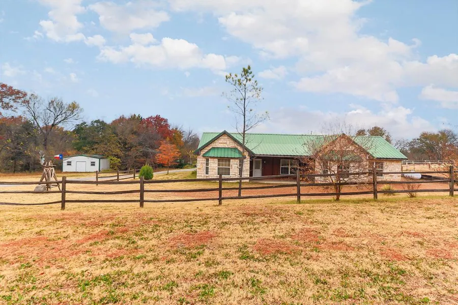 GREAT LOCATION--This home built with Austin stone and green metal roof is located near Decatur on 7.68 acres. Features include: pasture for livestock, creek along the back and a 24' x 24' shop with concrete floors and electricity. The well-maintained house has stained concrete floors, built-ins & custom window treatments. House has open concept living with split-bedroom arrangements. Large utility room can accommodate small desk or freezer. Large carport at rear of house leads to garage, providing ample space for entertaining and protected space for kids and pets. Call today for more info.