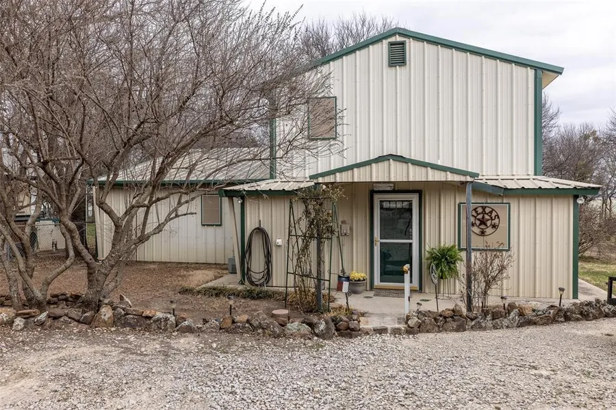 Charming home in Hideaway Lake, on Lake Bridgeport with private dock and boat slip. One owner home complete wirh RV covered parking, metal workshop with electricity and carport for 2 cars. This metal home was built first with second floor and then ground level built, spacious first floor master and nice walk in closet and bath overlooking the water. Eat in kitchen with stainless appliances and breakfast bar. The greatrooom overlooks the lake and there is a 32 foot covered patio for relaxing and grilling. Upstairs 2nd bedrm can sleep 4 -6 ,bunks or several beds.The second bedrm has it's own bath.Beautiful mature trees, chain link fencing and entrance gate for lock and leave. Large pantry,separate utility.