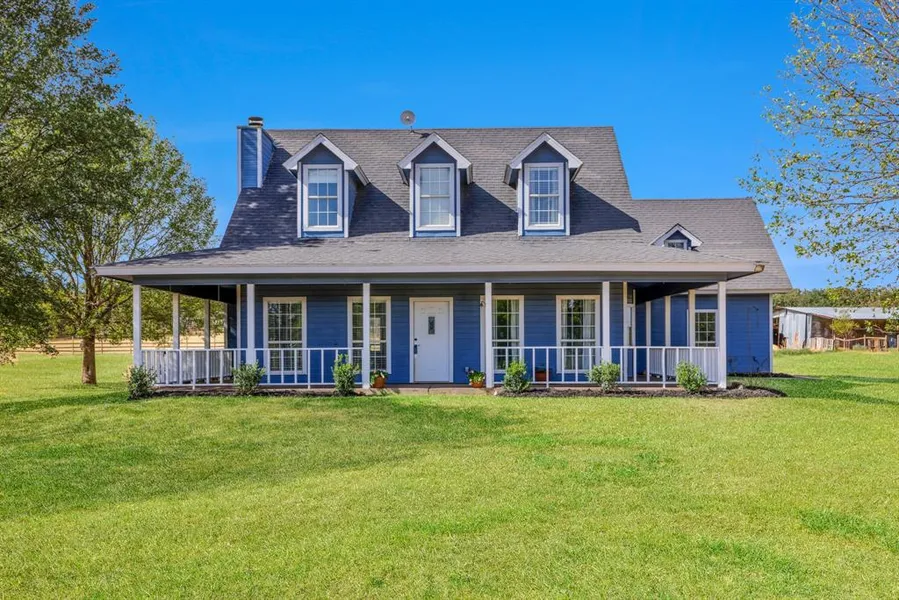 Country Living at its best! Come home to this charming farmhouse with wrap around porch minutes from downtown Springtown. This 3 bedroom, 2.5 bath home is situated on 10.5 acres with access to a private pond. The kitchen, updated in 2020, boasts granite countertops, new backsplash, a new stove and leads you into the dining room. You will find hardwood flooring and tile throughout the home. The downstairs owner's suite features new countertops in the bathroom. Above the garage is an additional 540 sq ft of finished living space that could easily be a fourth bedroom or home office. The barn on the property can be used for storage and is another bonus! Take advantage of the AG exemption with 9.5 acres of coastal hay. Drive through the gated entrance and let the winding gravel drive lead you home.