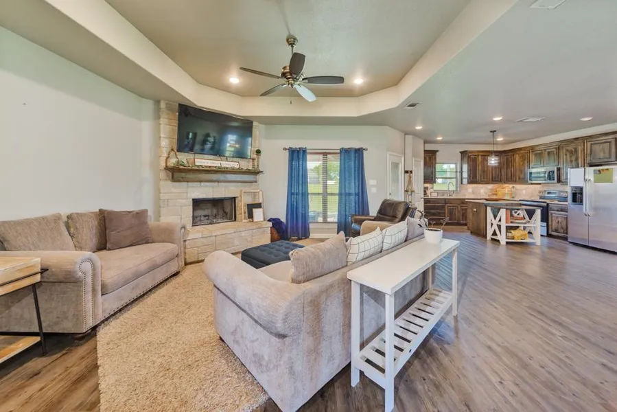 Motivated Seller! This beautiful family homes sits in Paradise on a road with no thru traffic. The cul de sac lot is another plus. This home has a great floor plan with large primary bedroom suite with walk in closet, a huge shower and double vanities. The den has a tray ceiling, wood burning fireplace and is open to the kitchen and dining room. Kitchen has electric range, granite countertops, island and great window over sink with a view of the large covered porch and the huge fenced in back yard. Two nice sized secondary bedrooms and two and one half baths. A new roof will be added before closing and it will be the same color as current roof.