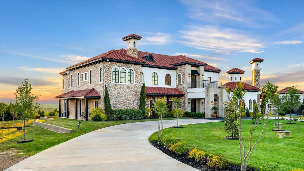 Welcome Home to La Casa de Fe! Located in Decatur, TX this private property offers some of the most breathtaking views you will find in North Texas. A soaring 25-acre property houses a 9,600-sq ft modern Spanish-style mansion with 5 bds, 8 bths. A 3,000-sq ft dream pool house is flooded with natural light and fully opens to a resort-style pool with a 32 foot infinity edge. The fully equipped Parisian guest villa ideal for hosting guests. Fitness center with a complete home gym, kitchen, and half bath. Sports court featuring pickleball, tennis and basketball, and volleyball. Other property amenities include a Helipad next to a large hanger or barn ideal for storing helicopters, boats, RVs, or horses. A driving range, hen house, 74,250 kw solar farm, secluded area featuring a putting green and a custom hot tub, and multiple outdoor entertaining areas, and a high flying Texas flag round out this beautiful home. Don't miss out on the epitome of refined living in this exceptional estate!